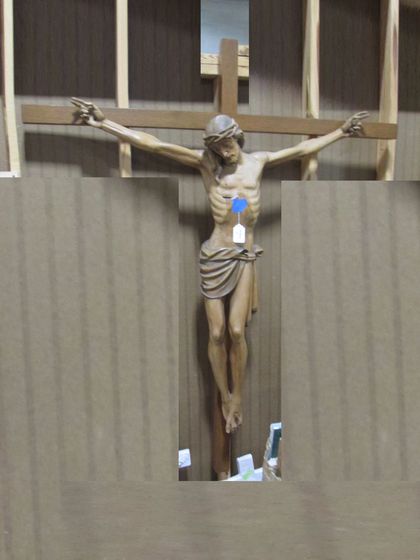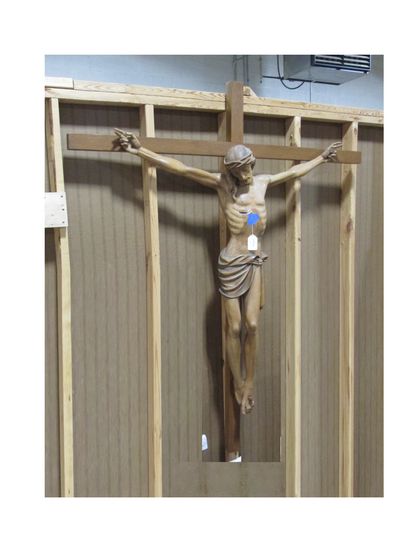 Crosses and Crucifixes → Cross/Crucifix Over 57" Tall — Hand Carved Wall Crucifix Item Number: 14640020 Category: Crosses and Crucifixes Cross/Crucifix Over 57" Tall Quantity: 1 Composition: Wood Color/Finish: Dimensions: 6'x5' Cross; 4' Corpus Condition: Fair Sacred Item: No Price: $1,500 *You can add an item to the cart and request more information or request to order the item.