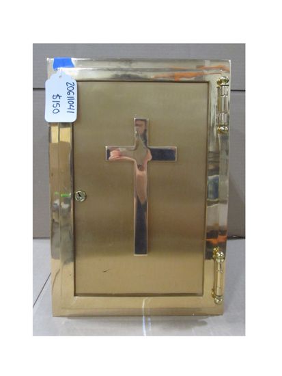 Furniture → Ambry (Oils) — Wall Insert; Cross on Door This product has been sold and is no longer available Item Number: 20611041 Category: Furniture Ambry (Oils) Quantity: 1 Composition: Brass Color/Finish: Dimensions: 10" w x 14 1/2" t Condition: Fair Sacred Item: No Price: $150