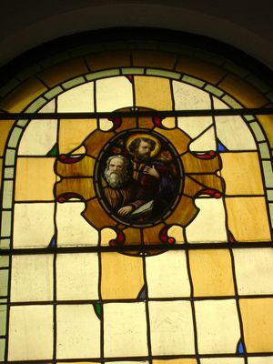 Mosaics and Paintings → Stained Glass — SS Cyril & Methodius Item Number: 10351024 Category: Mosaics and Paintings Stained Glass Quantity: 1 Composition: Glass Color/Finish: Dimensions: see drawing- medallion only Condition: Fair Sacred Item: No Price: $375 *You can add an item to the cart and request more information or request to order the item.