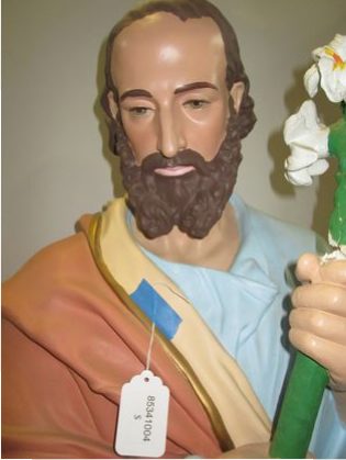 Statues → Statue Over 57" Tall — St Joseph (lily needs repair) Item Number: 85341004 Category: Statues Statue Over 57" Tall Quantity: 1 Composition: Plaster Color/Finish: Dimensions: 60" Condition: Fair Sacred Item: No Price: $1,000 *You can add an item to the cart and request more information or request to order the item.