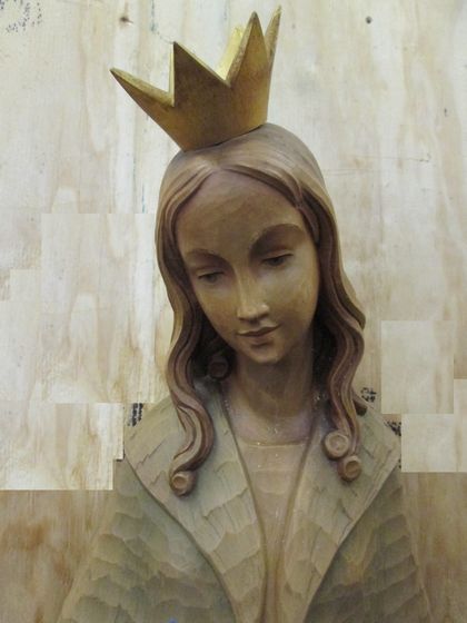 Statues → Statue 37" to 56" Tall — Wall Mounted Mary This product has been sold and is no longer available Item Number: 48342008 Category: Statues Statue 37" to 56" Tall Quantity: 1 Composition: Wood Color/Finish: Dimensions: 48" Condition: Fair Sacred Item: No Price: $1,250